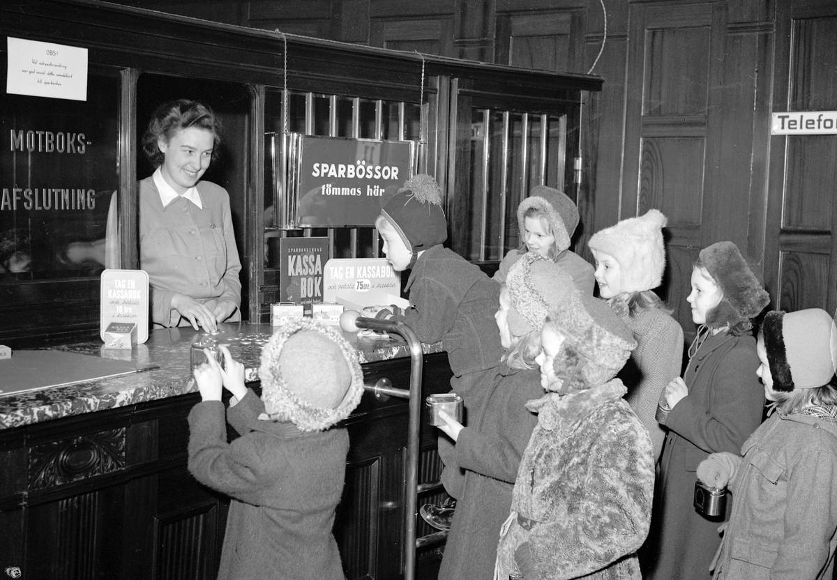 Gefleborgs Läns Sparbank. Tömning av barnsparbössor.