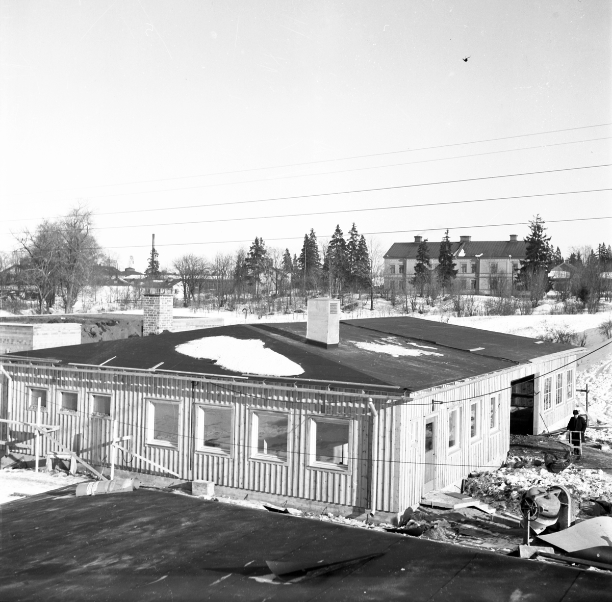 Titel: Joel Mattssons lagerbyggnad. Den 28 februari 1950