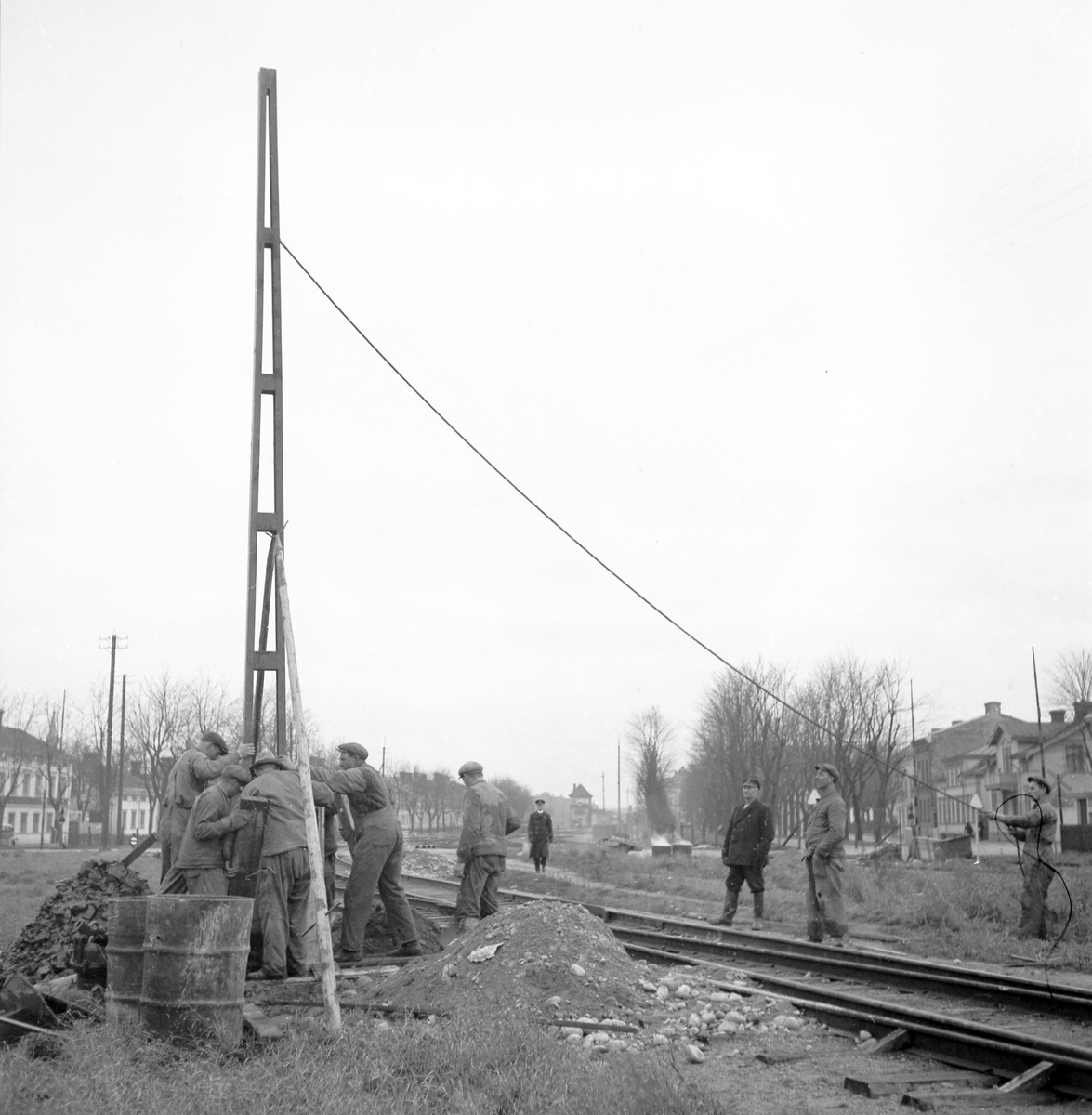 Reportage för Gefle Dagblad. Resning av stolpar. Centralen. År 1936