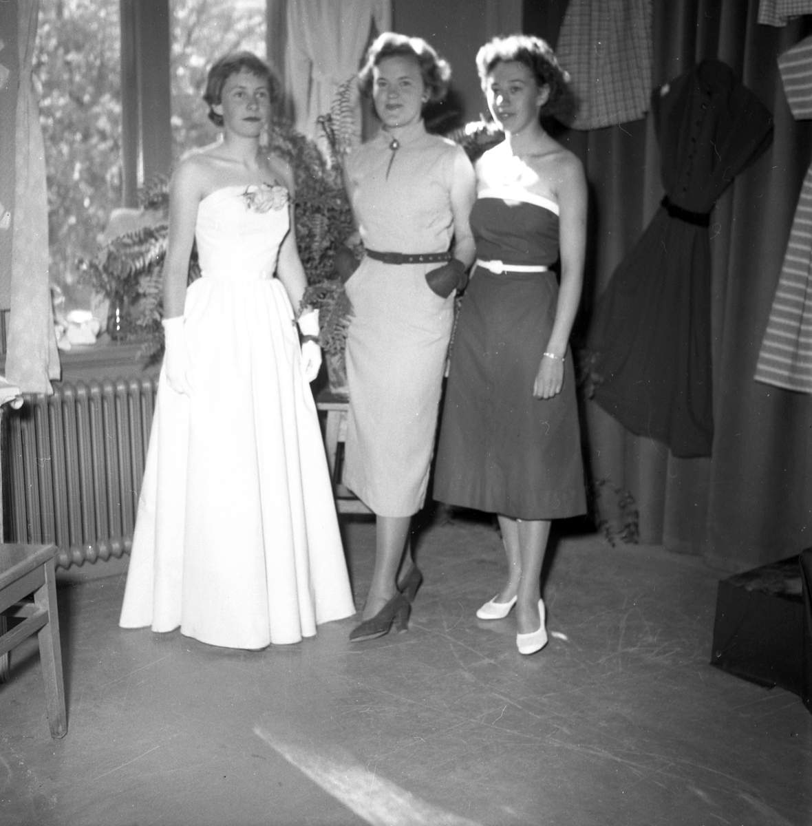Titel: Flickskolan Kommunala, mannekänguppvisning. 9 juni 1952.