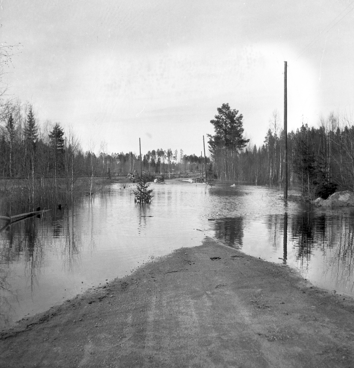 Reportage för Gefle Posten. Översvämningar. Ev i Hamrångetrakten. År 1937