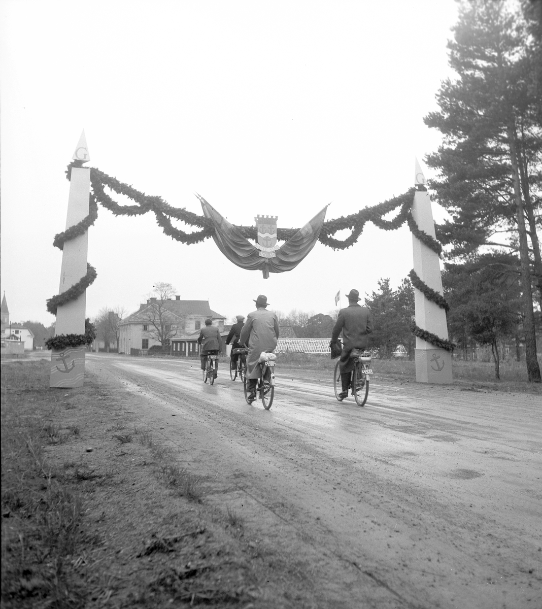 500-årsjubiléet i Gävle. Norra infarten till Strömsbro. Strömsbro skola i bakgrunden. Tornet på Strömsbro kyrka i vänster bildkant.