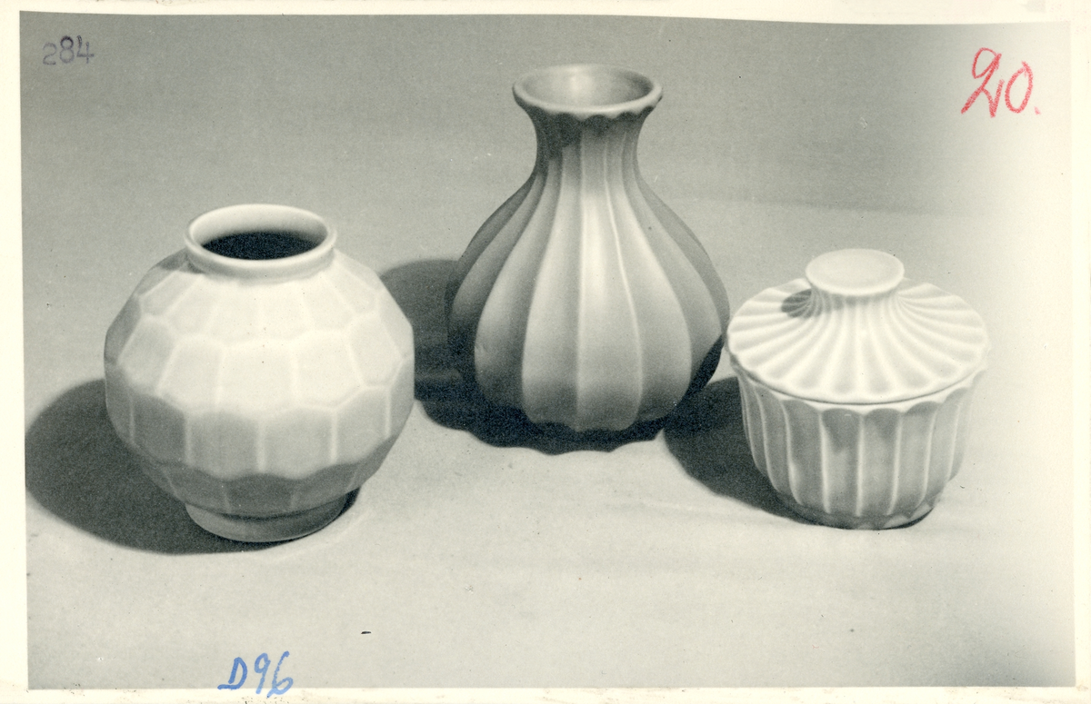 Vaser och bonbonjär från Bo Fajans, formgivare Ewald Dahlskog, 1900-talets mitt.