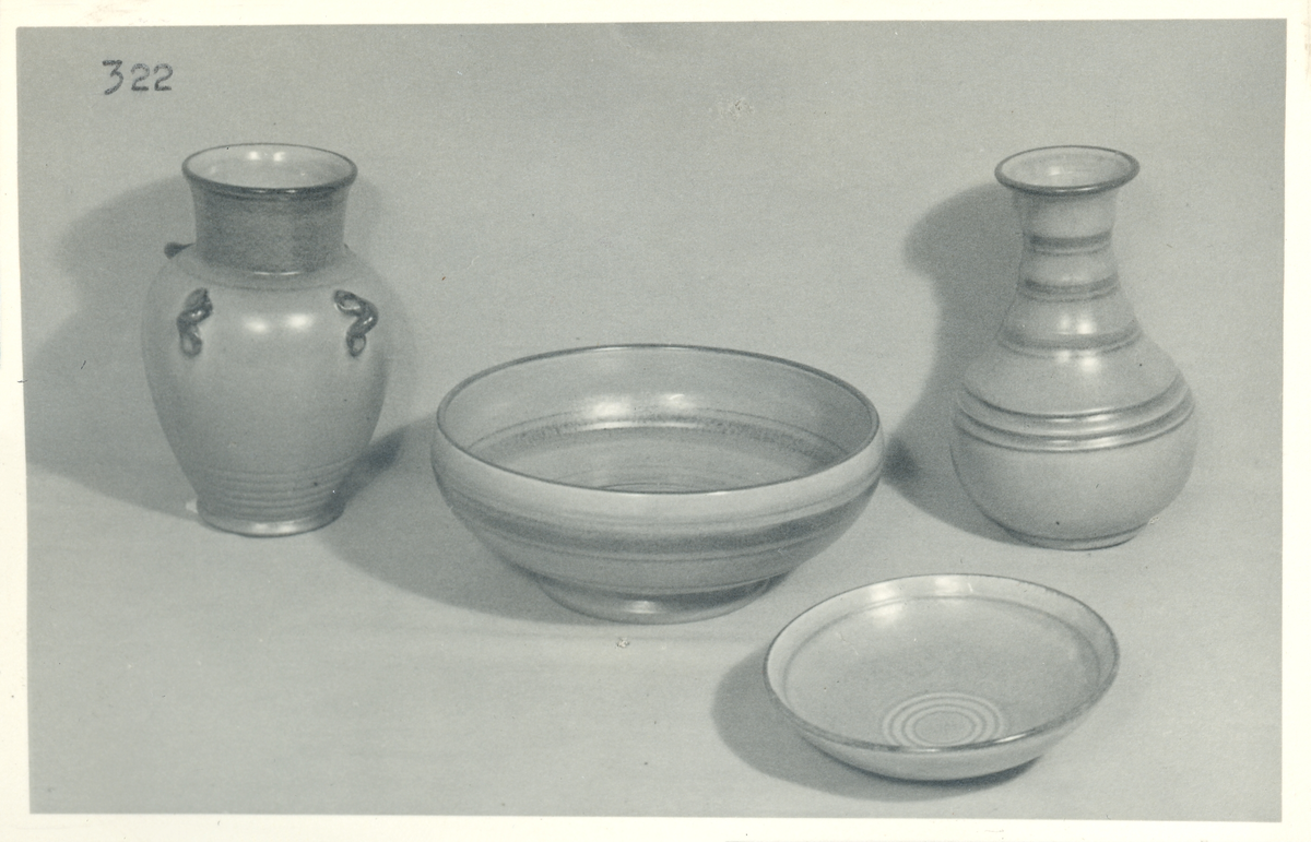 Vaser och skålar från Bo Fajans, formgivare Eva Jancke-Björk, 1900-talets mitt.
