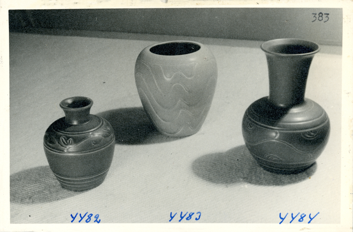 Små vaser från Bo Fajans, formgivare Eva Jancke-Björk, 1900-talets mitt.