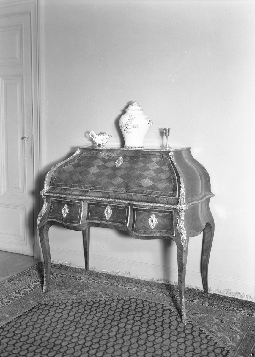 Från boken "Svenska Hem i ord och bilder" från 1944. Hemma hos doktor Gustaf Brun. Sekretär signerad av Nils Dahlin