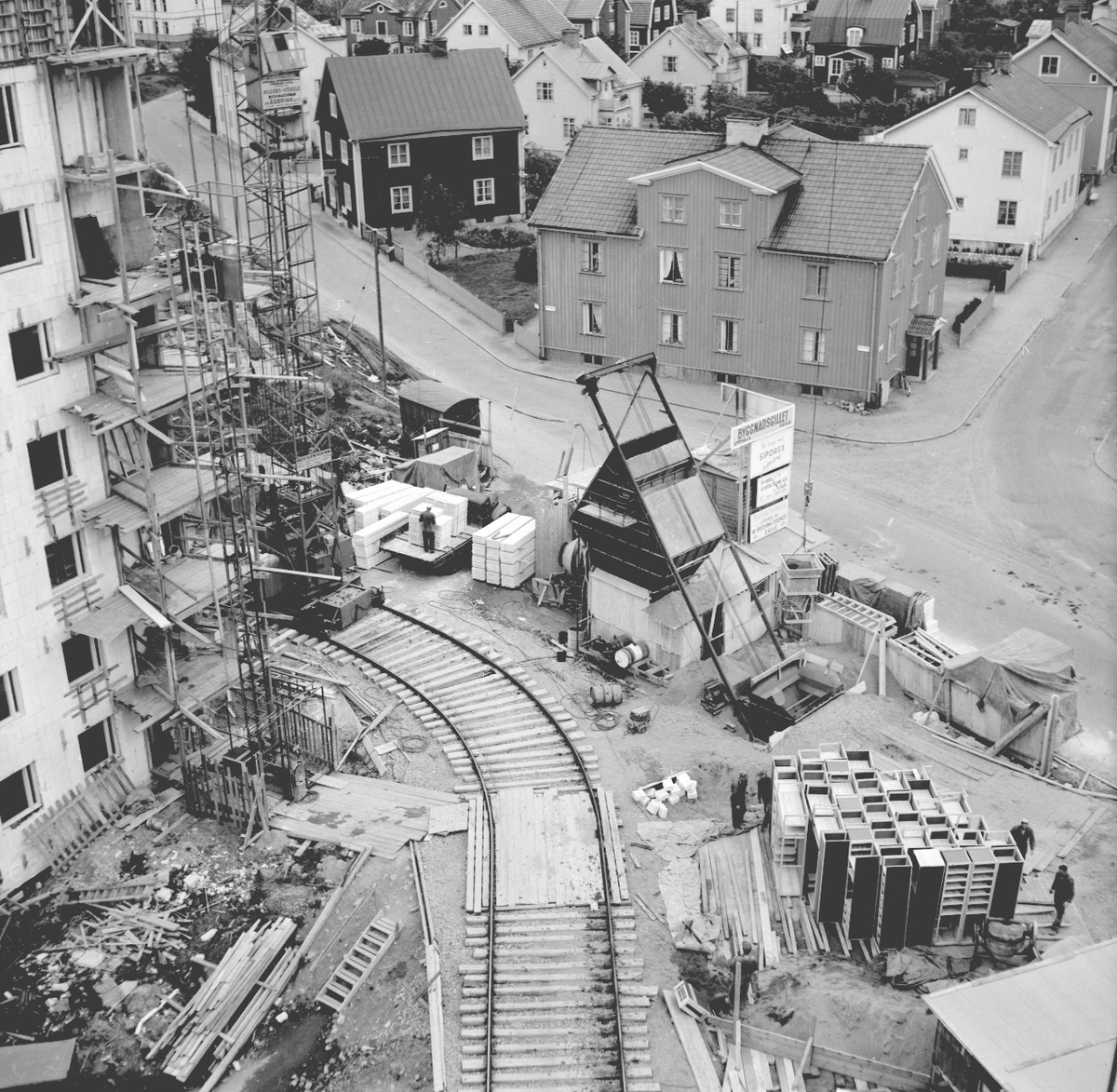 Höghusbygge på Brynäs. Korsningen Tallgatan och Styrmansgatan.