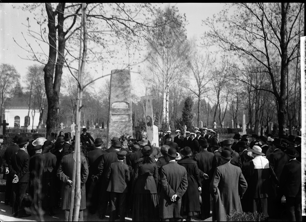 Samling vid Oscar Petterssons grav på 10 årsdagen av hans bortgång. Den 1 maj 1921.