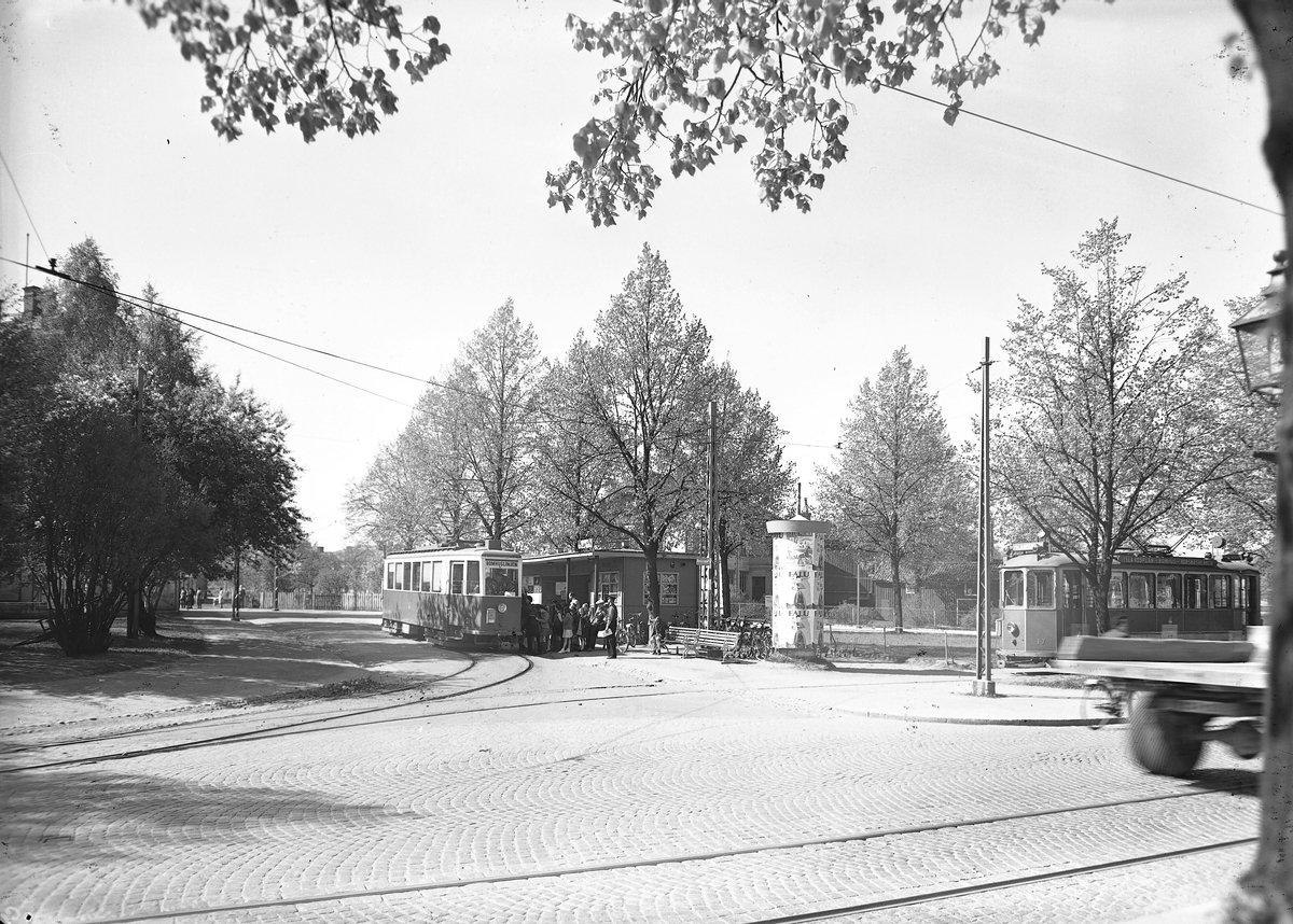 Slutstationen på Islandsplan. Spårvagnarna på Bomhuslinjen. Islandsplan - Bomhus - Korsnäsverken