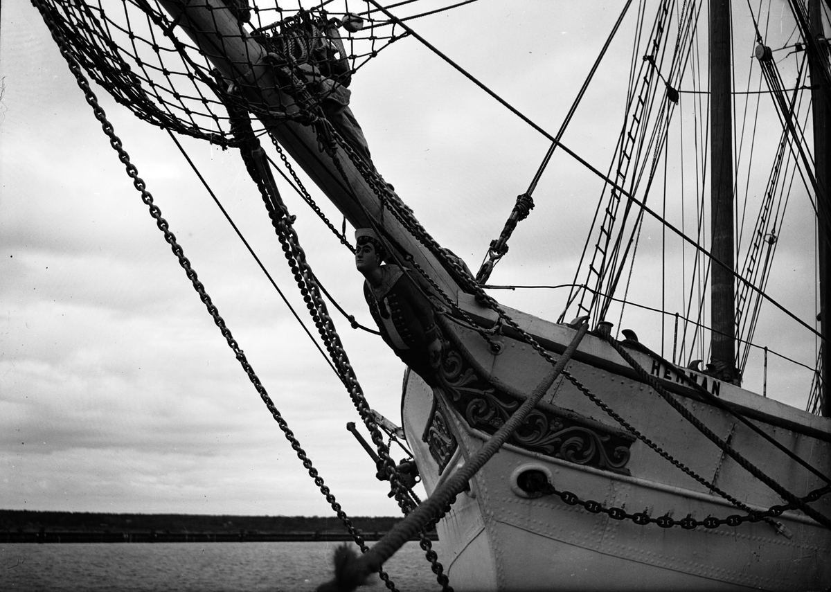 Båten "Herma"n med kapten. Reportage för Arbetarbladet. År 1939