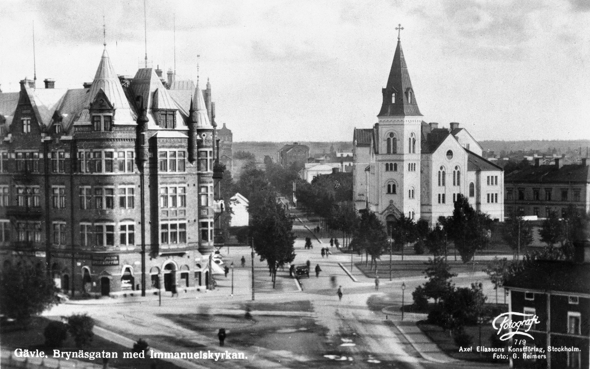 Korsningen Södra Fältskärsgatan och Brynäsgatan. Islandsplan med Immanuelskyrkan