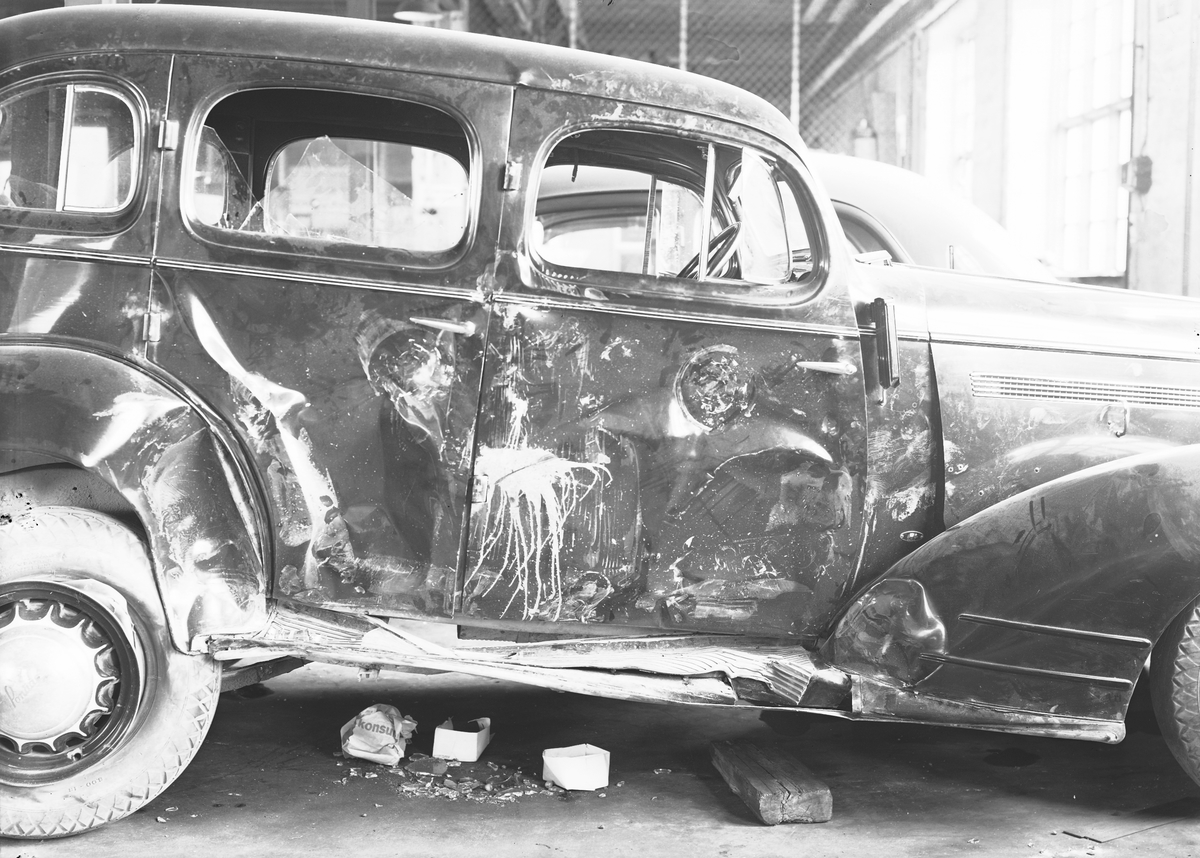 Krockskadad Pontiac. Ingenjör E. Bodin. Den 20 juli 1939.