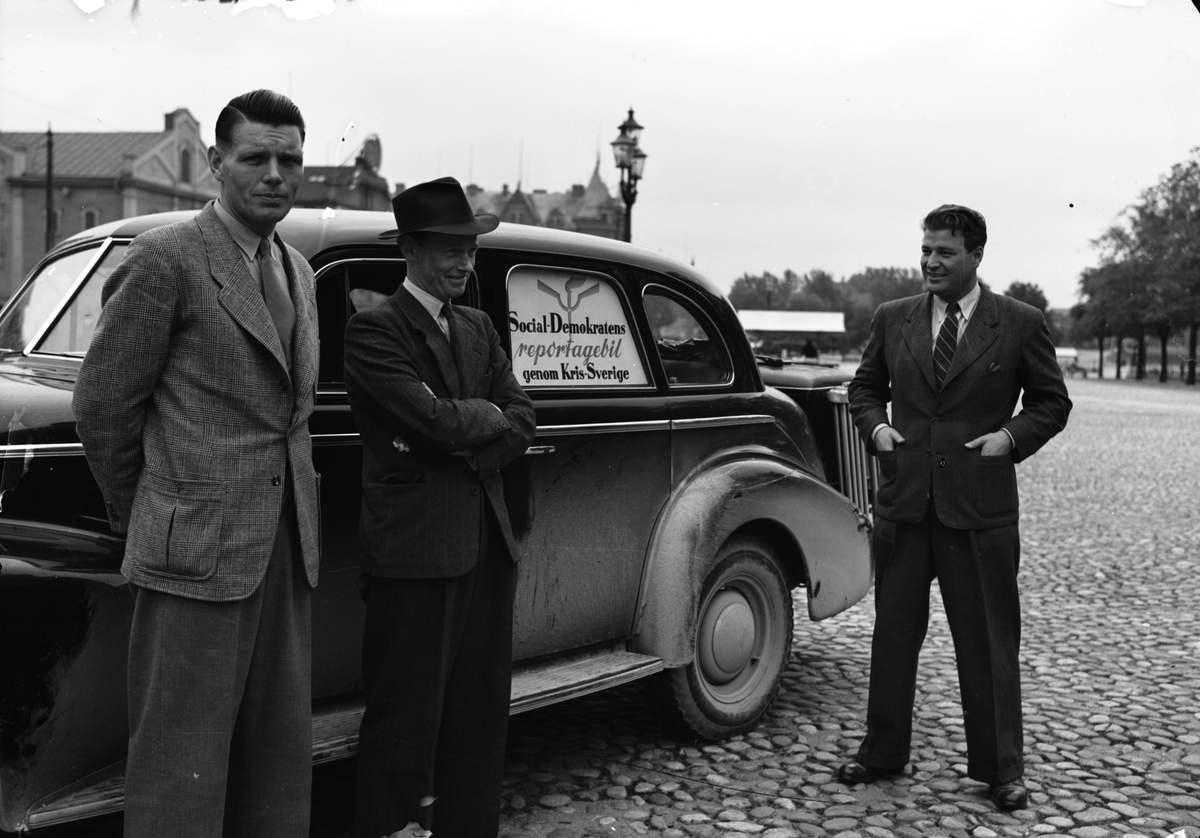 Socialdemokraternas propagandabil. Hamntorget. Den 26 Augusti 1941