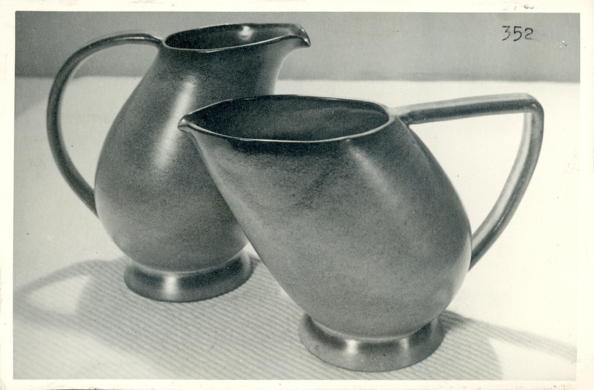 Kannor i konstglasyr Lava från Bo Fajans, formgivare Ewald Dahlskog, 1900-talets mitt.