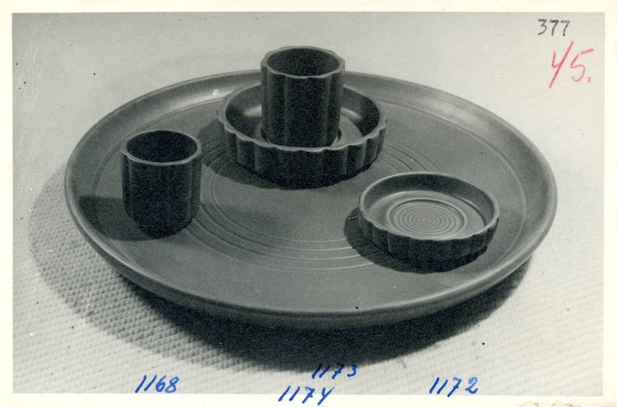 Bägare, askfat och bricka från Bo Fajans, formgivare Allan Ebeling, tidigt 1900-tal.