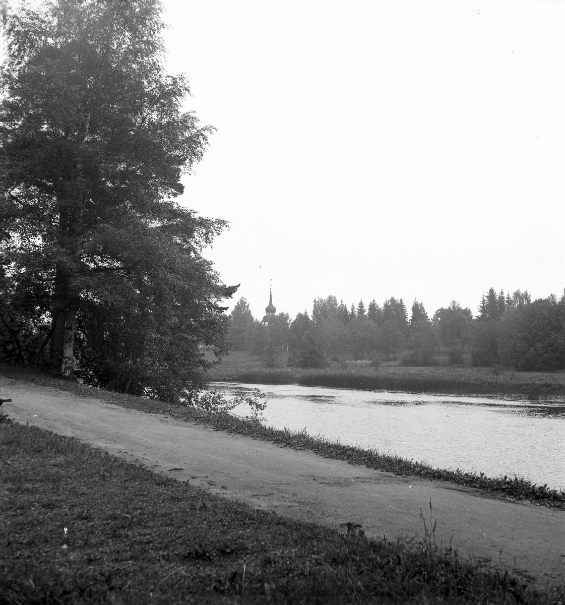 På andra sidan Gavleån ligger Hälsinge Regemente. I 14. Kungsbäck. Augusti 1944. Klockstapeln invigd 1916