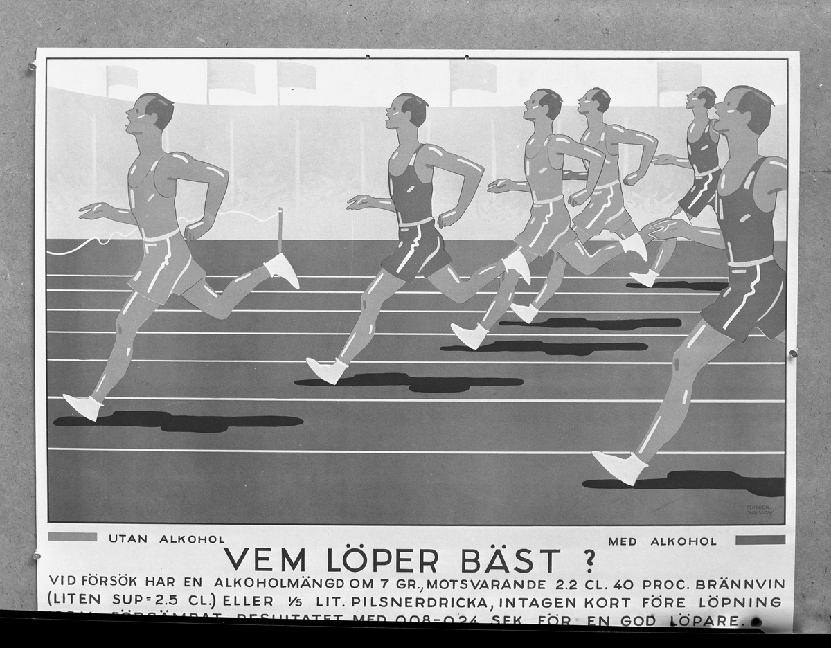 Affisch. "Utan alkohol - med alkohol. Vem löper bäst?"