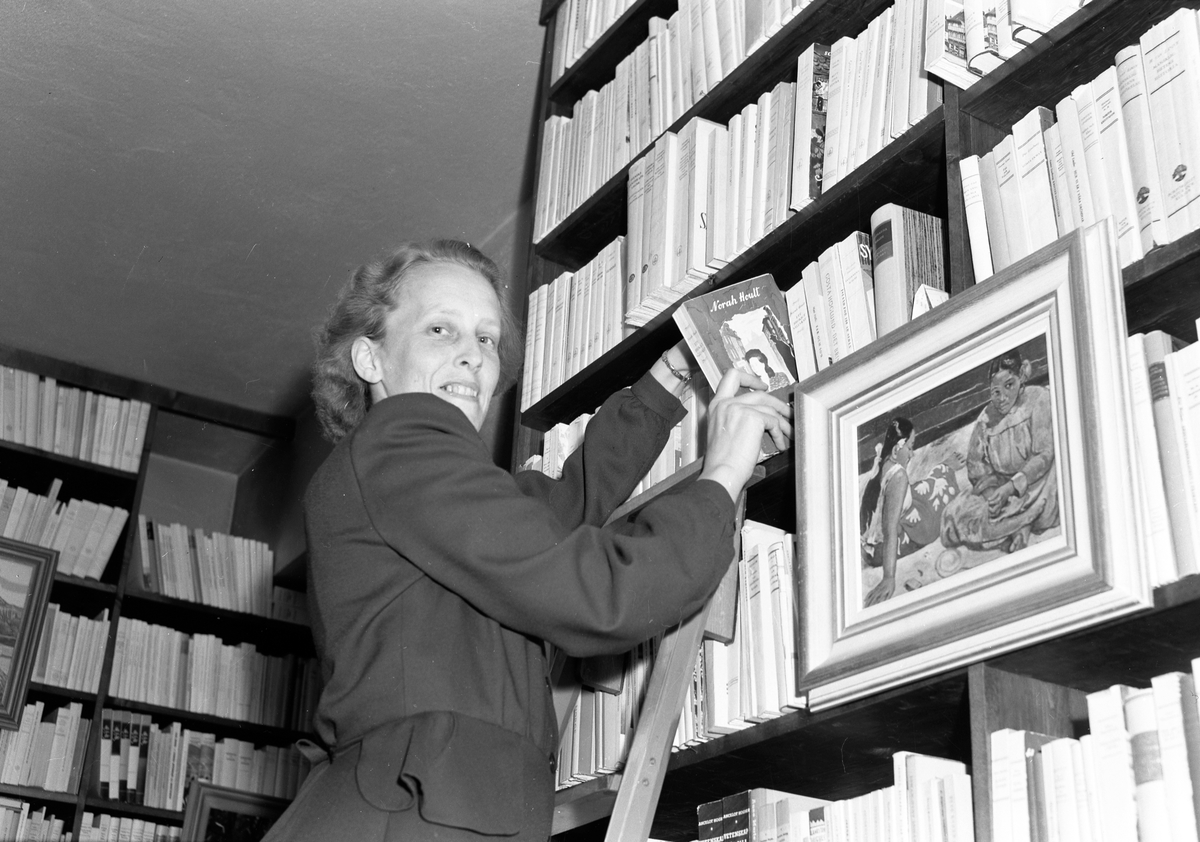 Bokcirklar i en bokhandel. Reportage för Arbetarbladet. Den 24 november 1949
