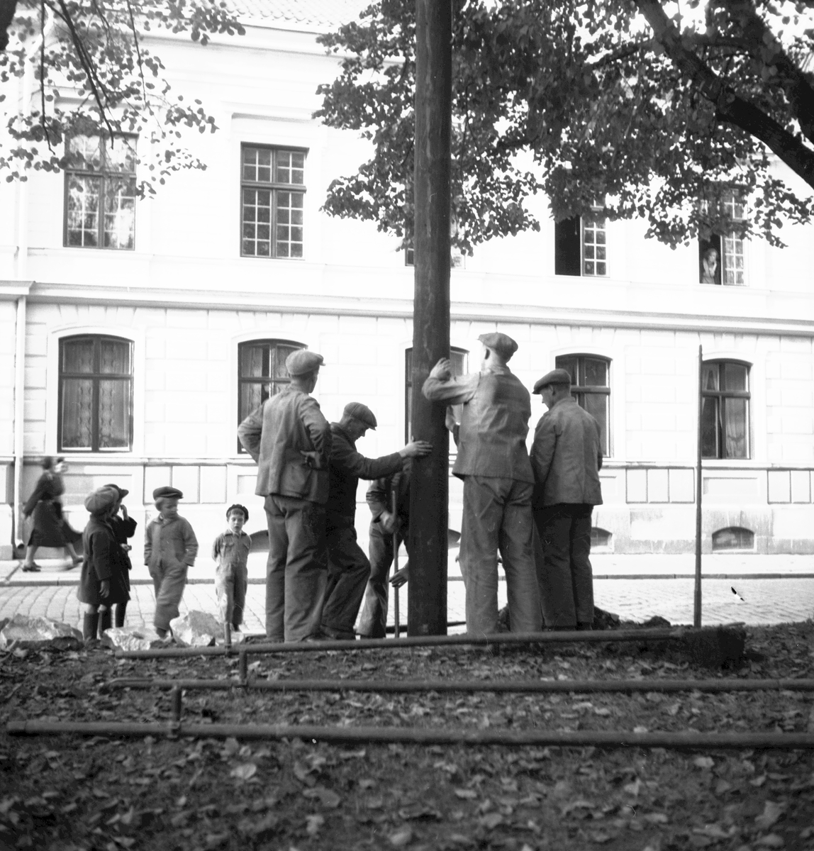 Resning av stolpar. Reportage för Gefle Dagblad. Den 1 oktober 1937