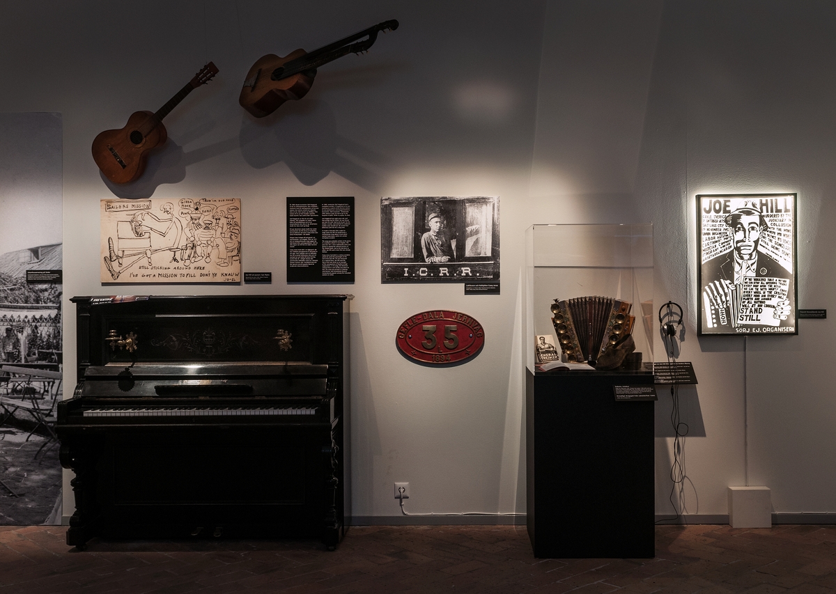 Utställningen "Joe Hill - martyren från Gävle" som visades på Länsmuseet Gävleborg under 2015.