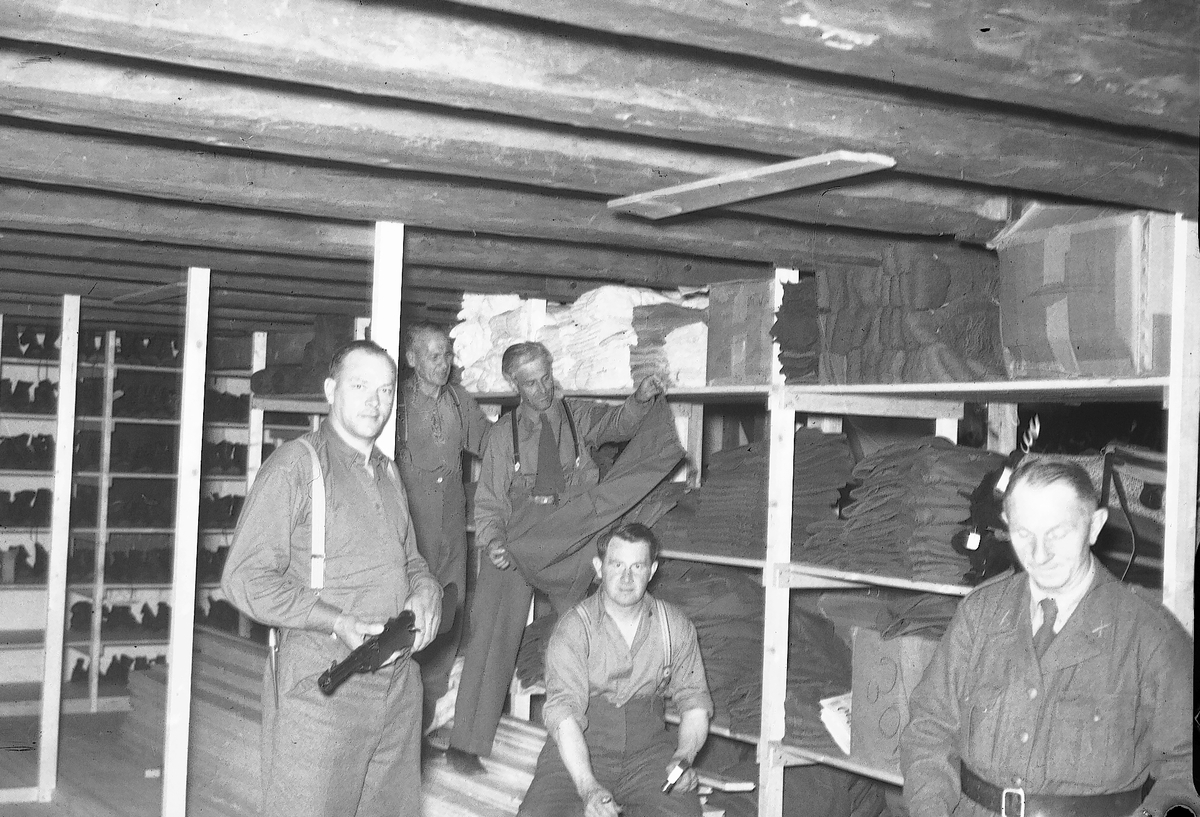 Larsson Bengt på Kungsbäck i militärförrådet för kläder