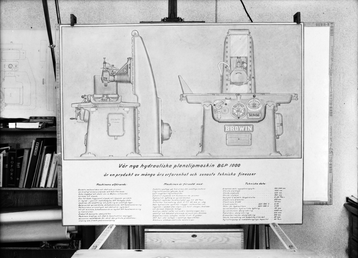 Browinmaskiner AB. Ritning på en planslipmaskin. Den 11 maj 1944.
