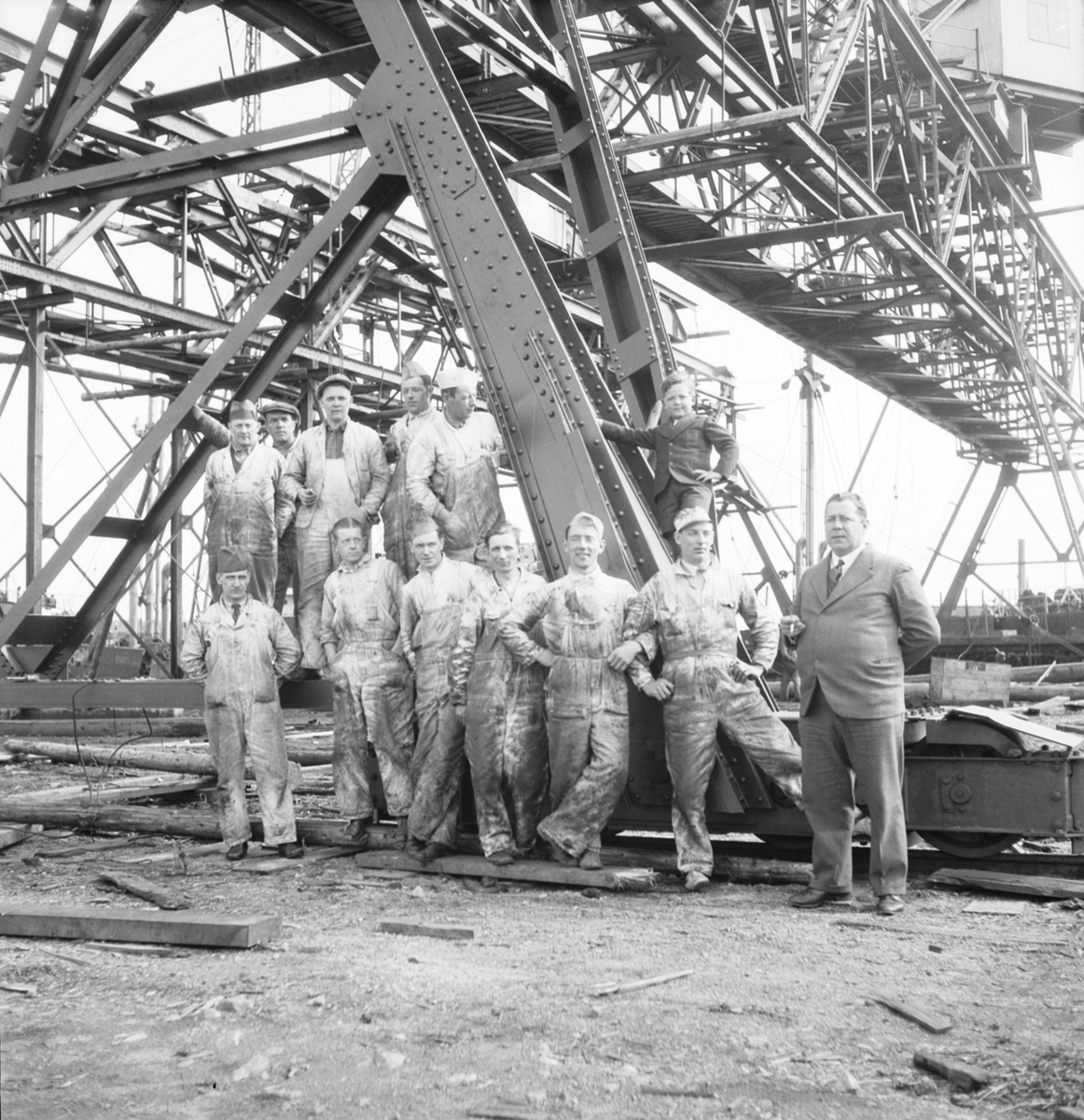 Målarmästare Östlund, målning av kranar. Juni 1937