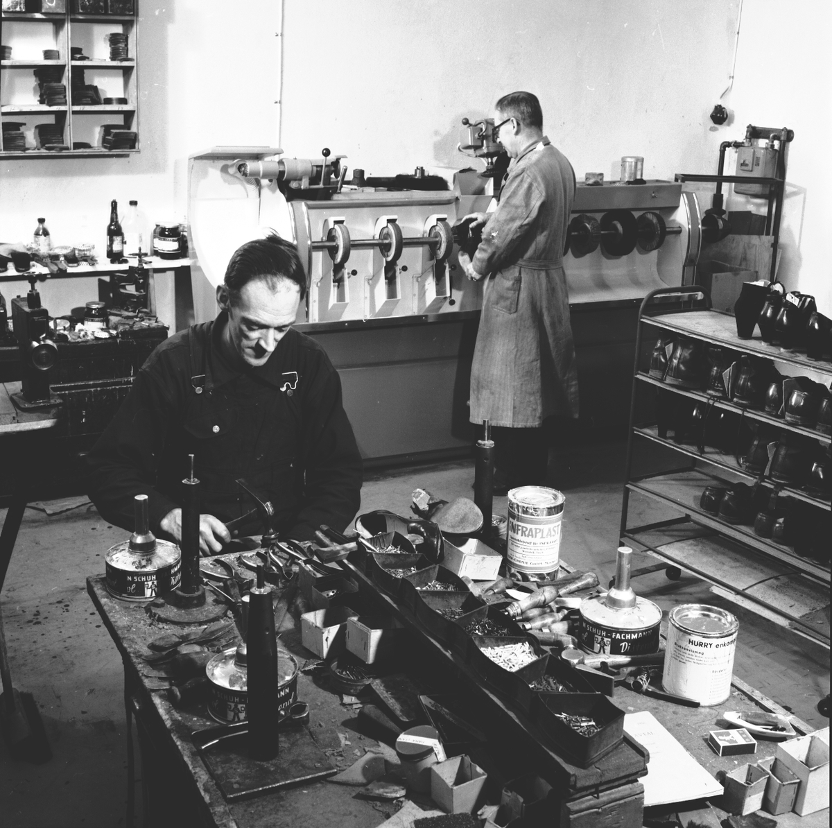 Skoverkstad. Den 21 januari 1957. Bilder för bok