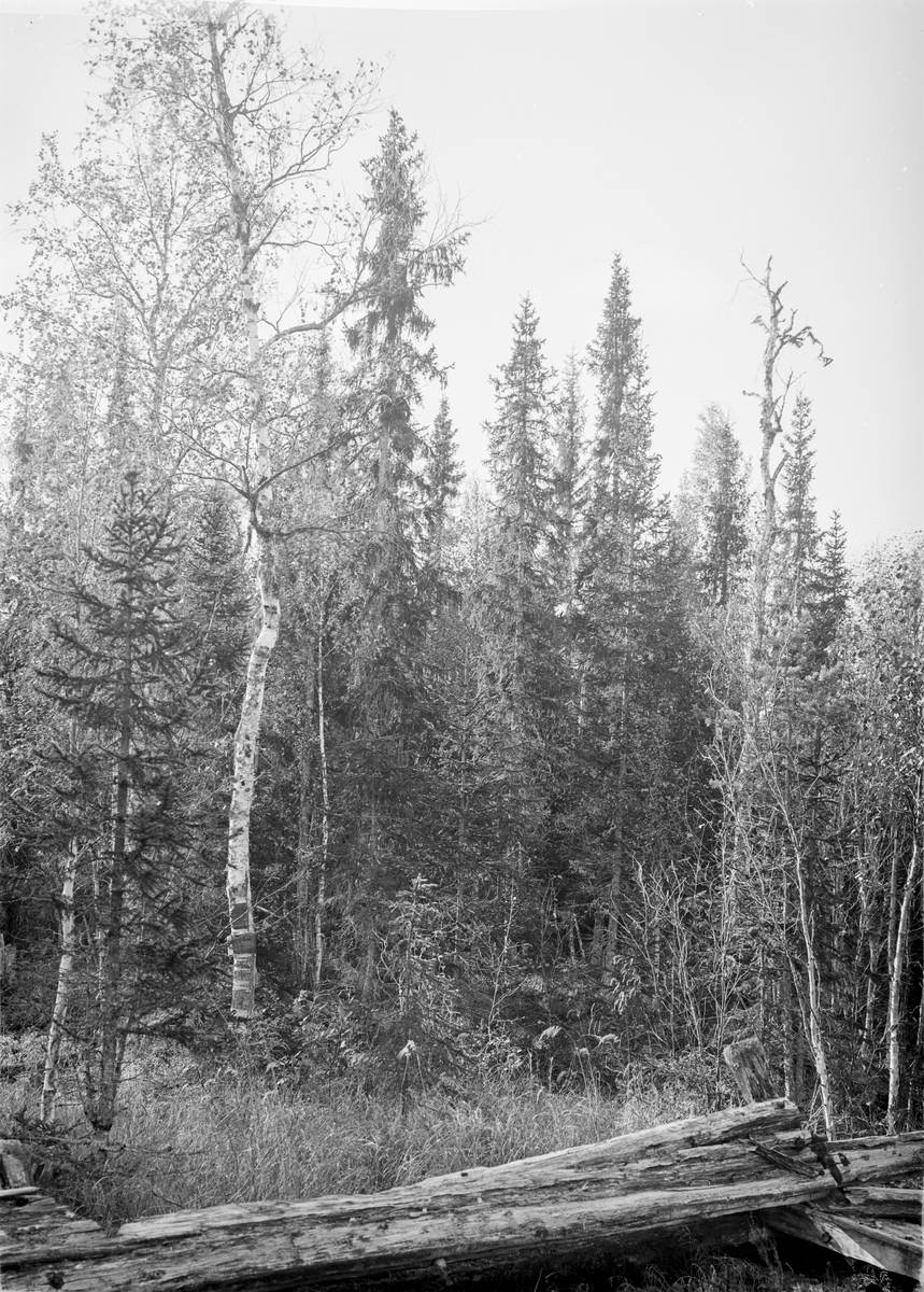 Brattsjö: Vid gamla timmerrännan. Genom självdränering uppkommen björkgranskog å 2 m. djup myr.