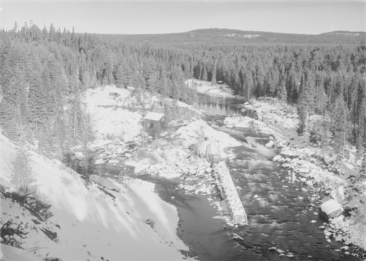 Studsviken: Gideälven, Kvarnforsen. Till höger ungskog å Nordanås torp.
