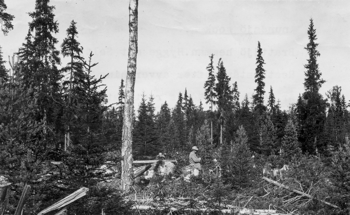 Brattsjö: Hygge mot Seltjärns rågång. Restbestånd efter avverkning år 1900-1901. År 1920 avverkades beståndet i förgrunden. Stark reagens i restbeståndet. Tallkultur samt självsådd av tall.