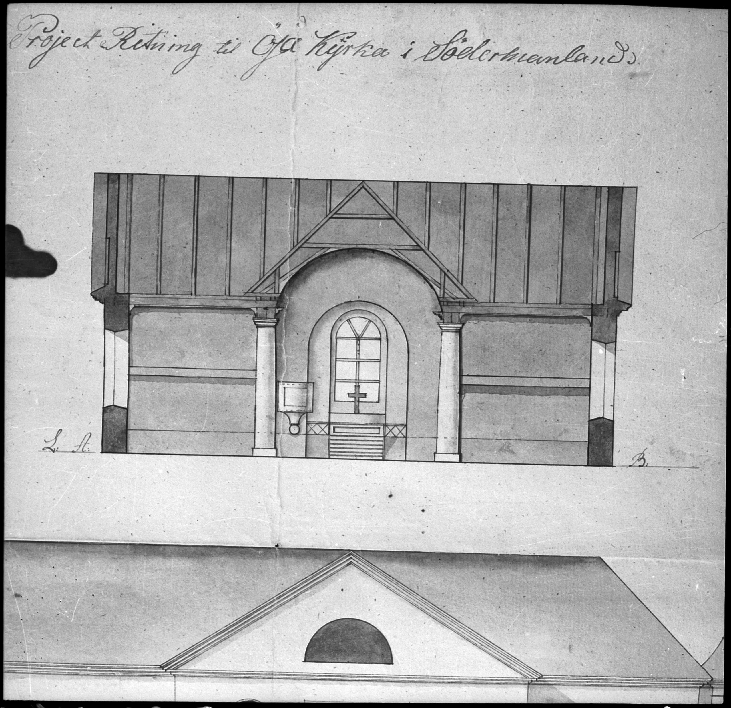 Förslag ny kyrka, foto av ritning.