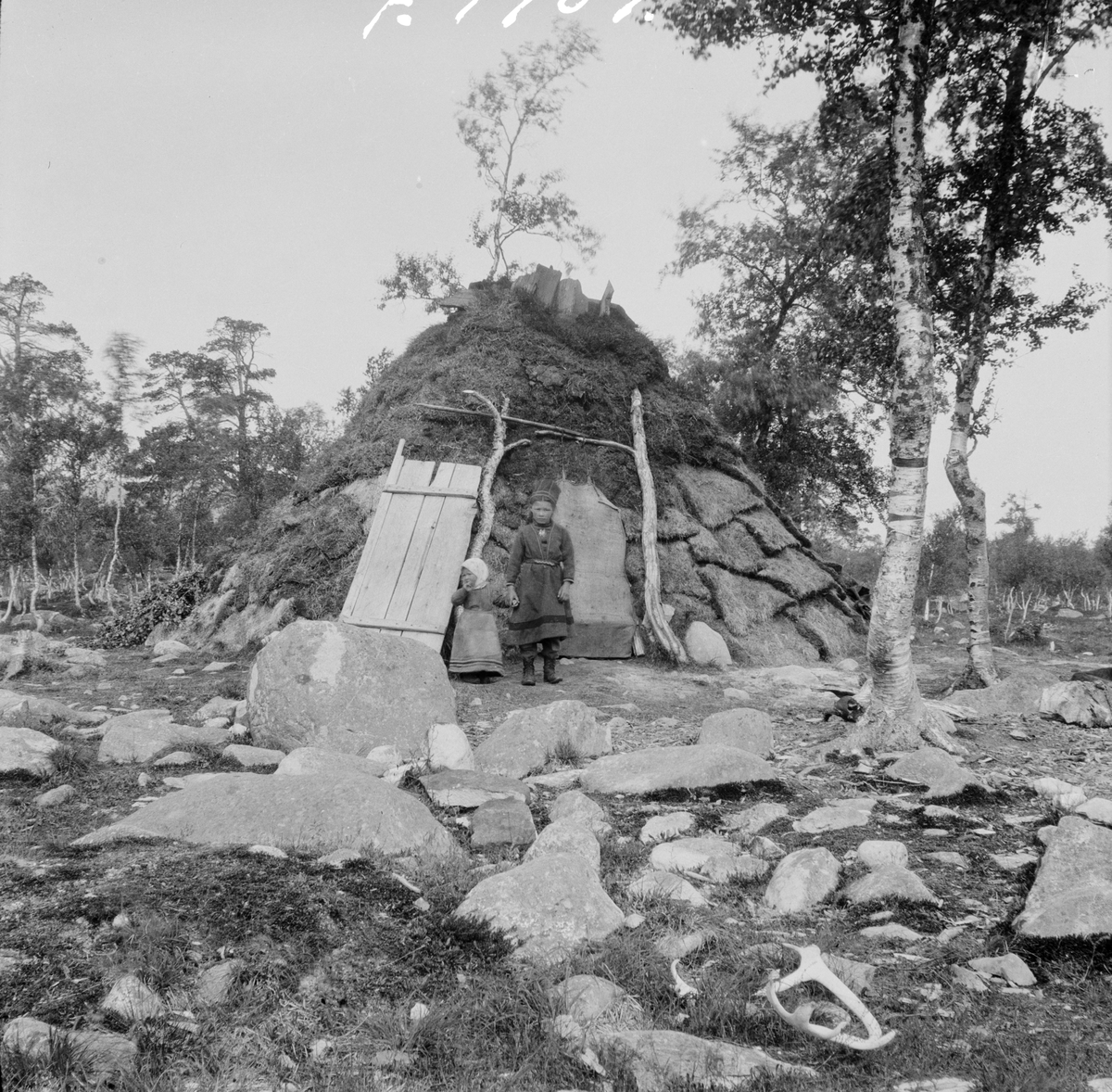 Idre, Hävlingskällan 1912. Torvkåta. Jo Jonssons.