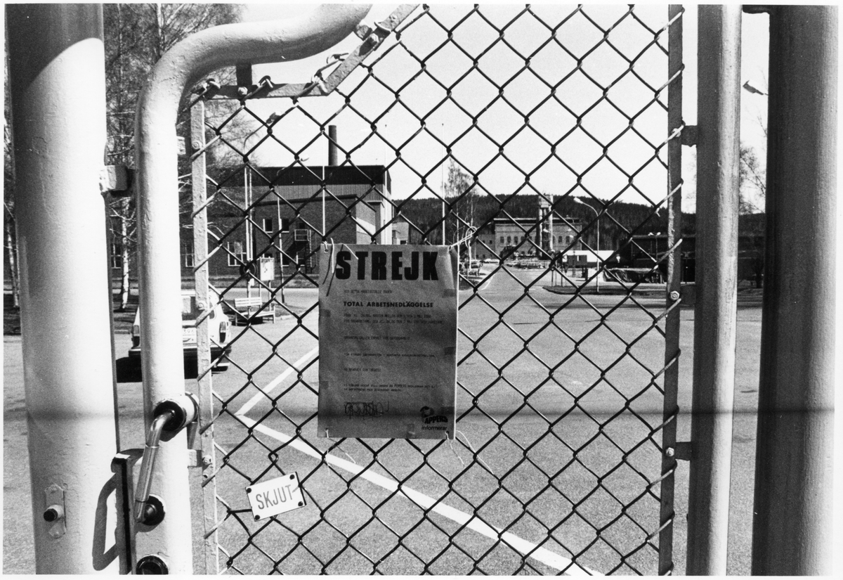 Strejk-affisch på grind, Kvarnsvedens pappersbruk.