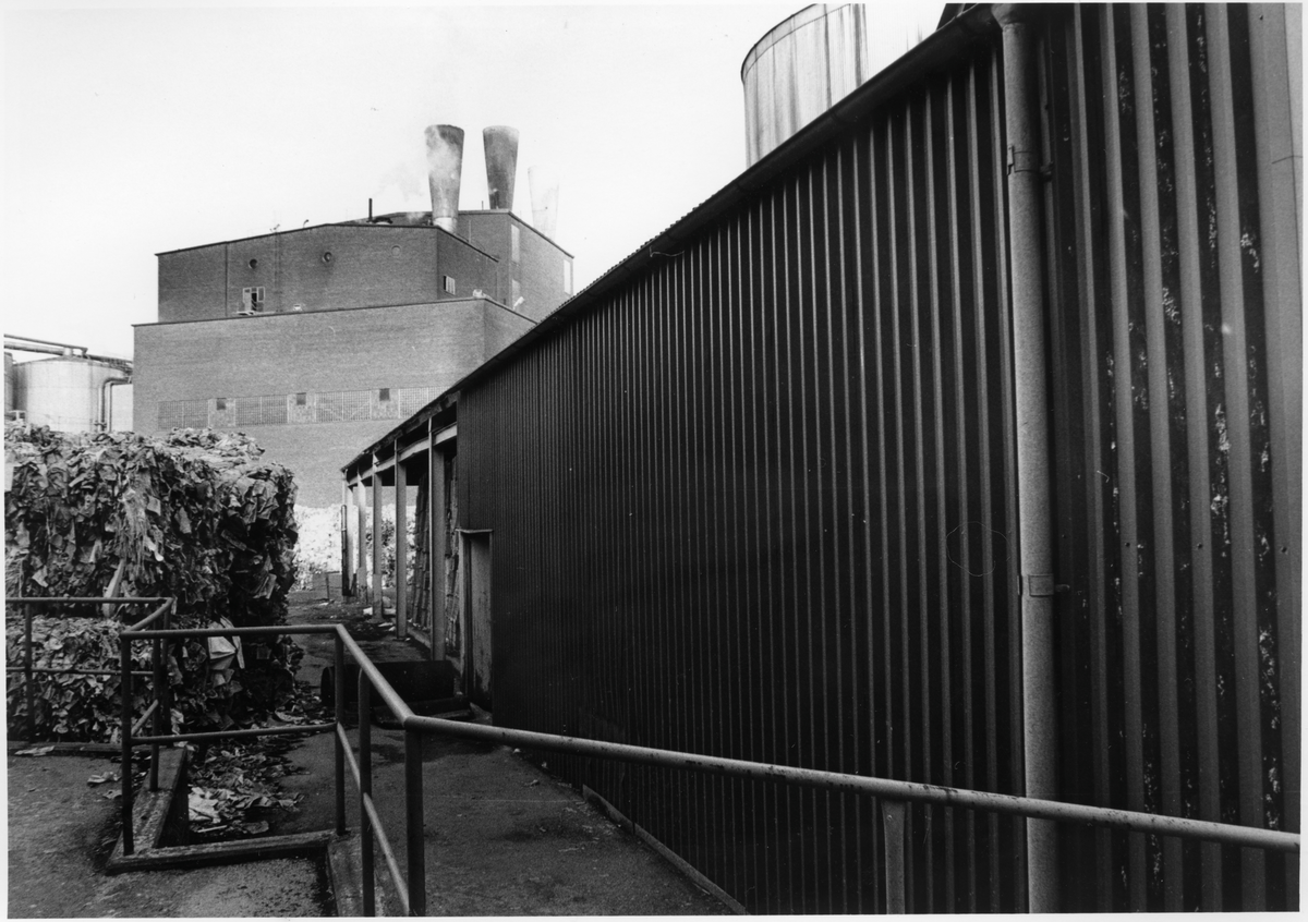 Titel: Massaupplösning, Kvarnsvedens pappersbruk. Exteriörbild.