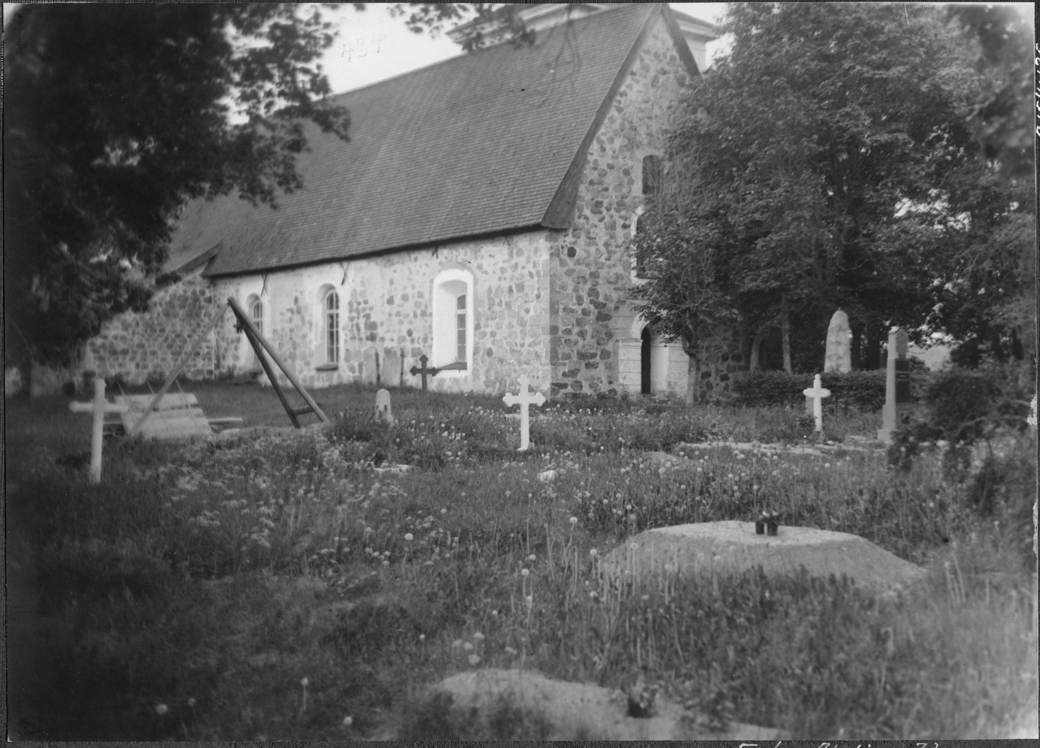 Kyrkan med omgivning, mot nordväst.