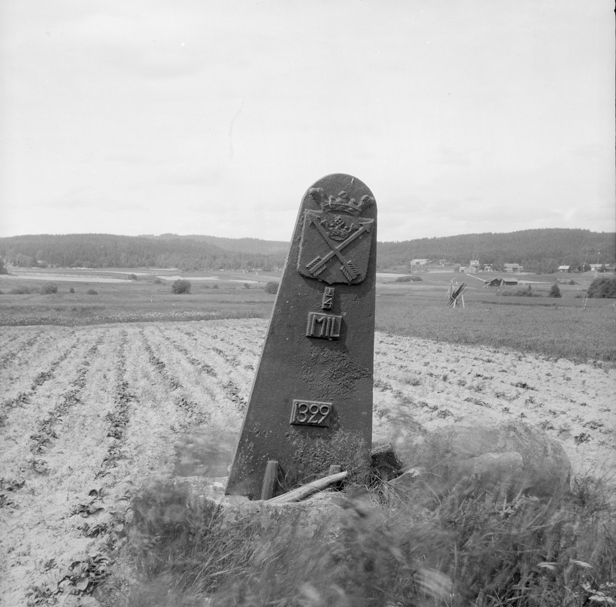 Titel: Borlänge, Stora Tuna, tälnbäcken, milstolpe.