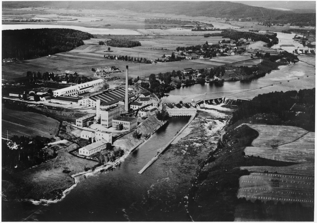 Flygfoto över Kvarnsvedens pappersbruk, 1930-tal.