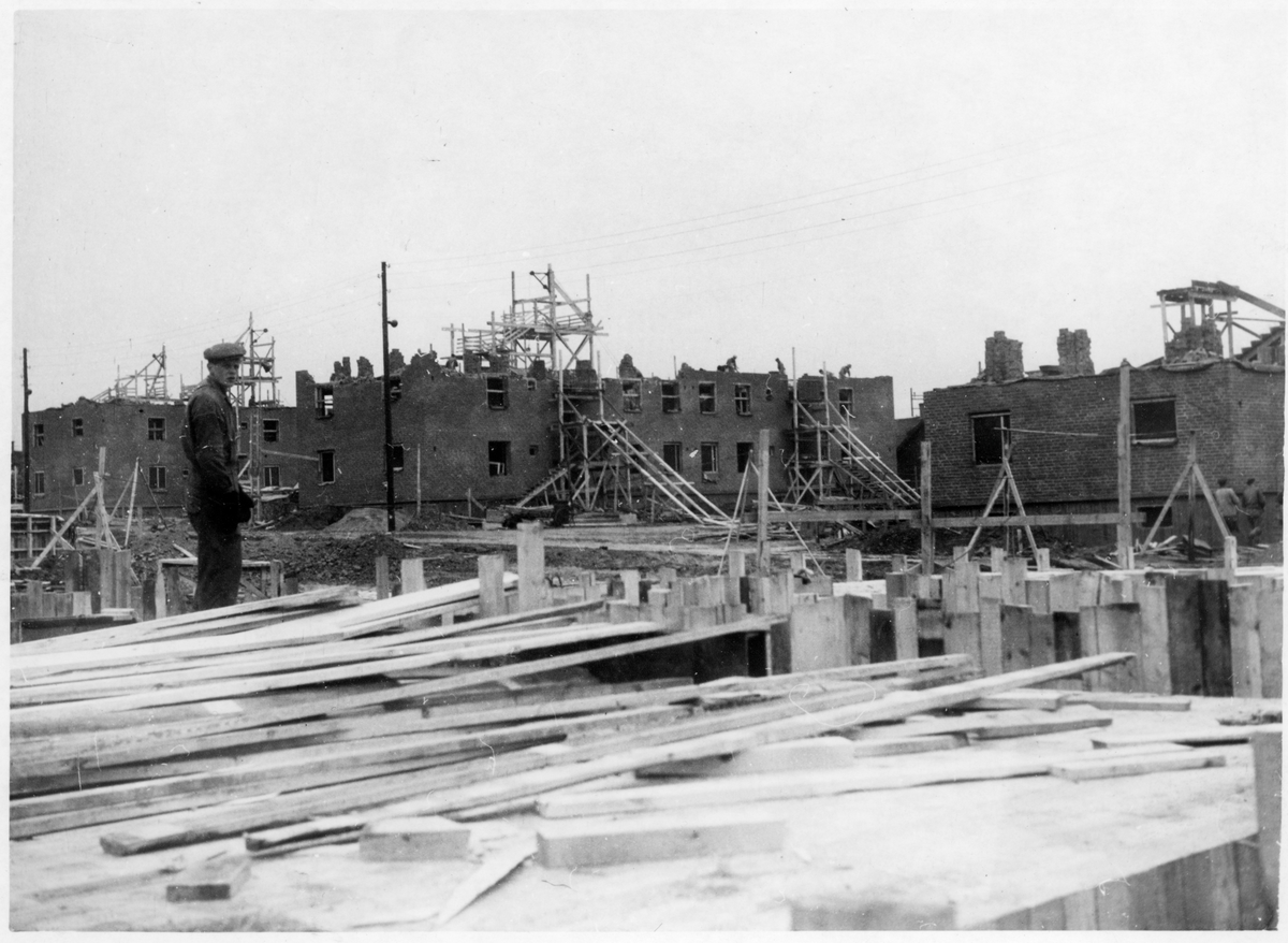 Kvarnsvedens pappersbruk. Man vid byggnation.