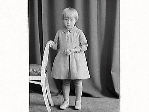 Flickporträtt med taburett. Tyra Bengtsson beställde bilden och är troligen flickans mor.