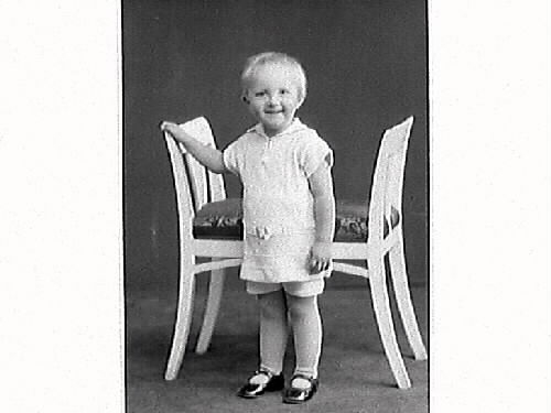 Gosse vid taburett. Nils Andersson beställde bilden och är troligen barnets far med någon anknytning till "Charkuteriet".