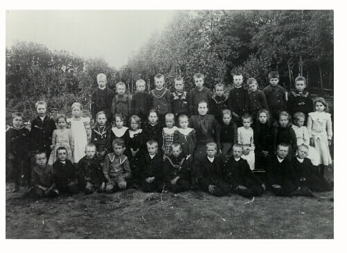 Skolfoto taget omkring sekelskiftet 1900 från Magårds skola. Lärarinnan Alida Jakobsson från Börjas i Okome undervisade tre klasser samtidigt. Barnen kom från Ätrafors, Okome. Övre raden (senare vistelseort känd 1975): Axel Bengtsson, Bäckagård (Falkenberg); Albert Nilsson, Ätrafors; Albert Johansson, Gällsås (Gällared); Johan Albert, Gällsås (Amerika); Gottfrid Skogström, Ätrafors (Halmstad): Gottfrid Dahlberg, Gällsås (Okome); Yngve Johansson, Ätrafors (Amerika); Karl Vilhelm Karlsson, Jordsbacka (Älvgården); Sigfrid och Gustaf, bröder, Ätrafors (obekant vistelse); Ivar Andersson, Backagård.