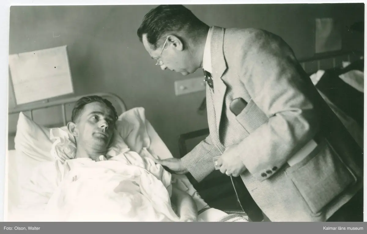 Skadade tyska örlogsmän på lasarettet får besök av konsul Lind ( tysk konsul) 1941.