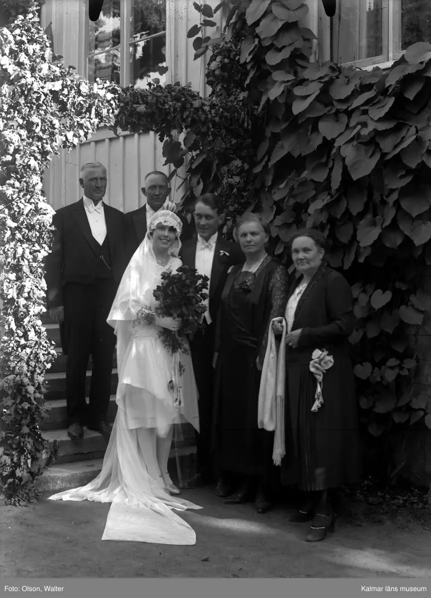 Bröllopsfoto av ett par. Enligt Walter Olsons journal är bilden beställd av herr Håkansson ifrån Svaneberg. Kalmar läns museum känner inte till om den personen är avporträtterad.