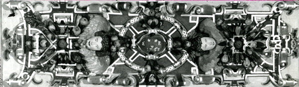 Titel: Kalmar slott. Detalj av Kungsmakets kassettak. På vissa plåtar har Martin Olsson klistrat eltejp för att markera hur bilden skulle beskäras i boken.