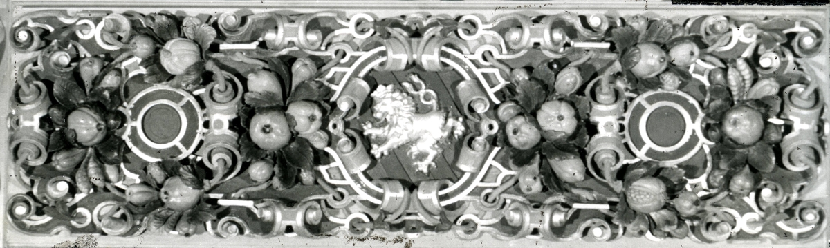 Titel: Kalmar slott. Detalj av Kungsmakets kassettak. På vissa plåtar har Martin Olsson klistrat eltejp för att markera hur bilden skulle beskäras i boken.