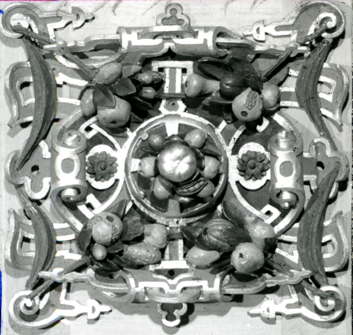 Titel: Kalmar slott. Detalj av Kungsmakets kassettak. På vissa plåtar har Martin Olsson klistrat eltejp för att markera hur bilden skulle beskäras i boken.
