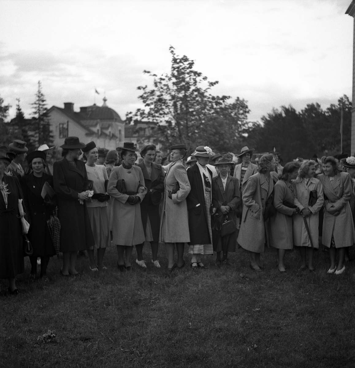 Ett stort antal uppklädda damer har samlats vid Flickskolan (Graffmanska skolan) i Växjö, i samband med skolträff.