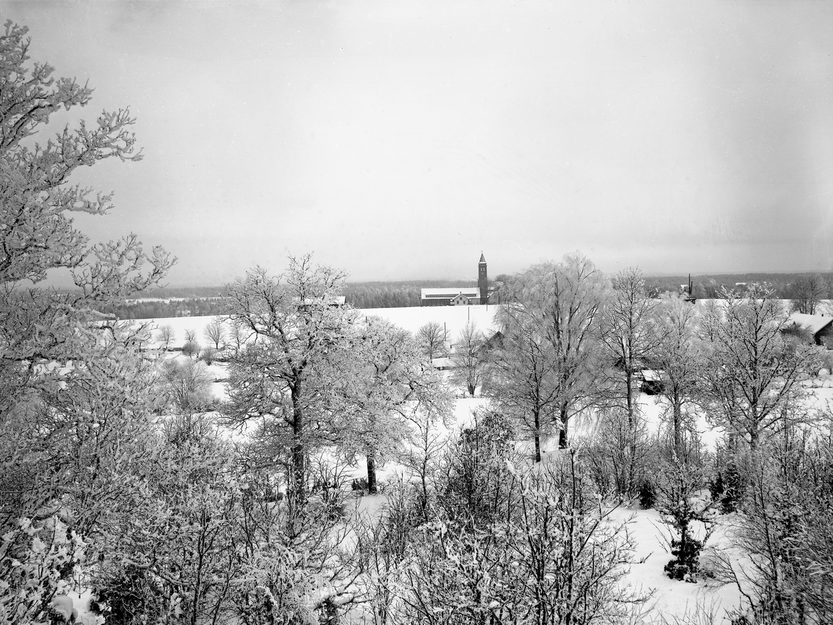 Ingelstad, med säteriet i bakgrunden där utsiktstornet och tennishallen kan skymtas.