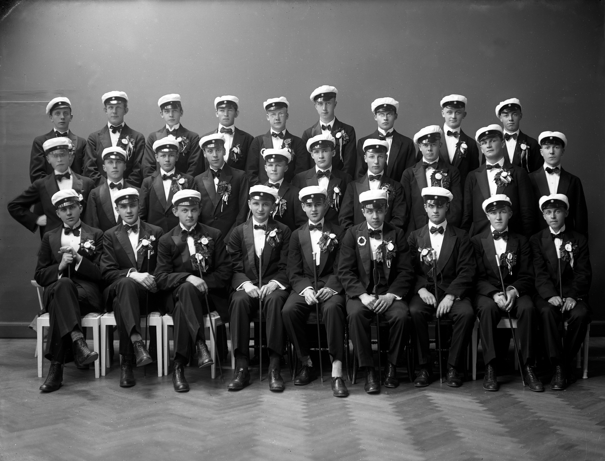 Studentgrupp fotograferade i ateljé, Växjö 1924.